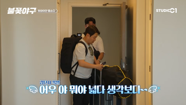 이번 1화는 하와이 전지훈련을 떠나는 과정이 주요 내용이었어요. 인천공항에 하나둘씩 도착하는 선수들의 모습이 이어졌는데, 누구는 출국 시간을 착각해 새벽부터 오고, 누구는 야구 방망이를 들고 나타나고, 등장부터 캐릭터들이 확실하게 살아 있었습니다. 서로 티키타카도 자연스럽게 이어지면서 그야말로 ‘이 조합, 기다렸다!’ 싶은 장면이 많았죠.